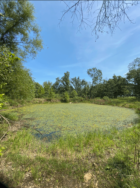 Using our vegetation rake, we were able to scoop water shield from this fishing pond. The landowners were thrilled with the transformation!